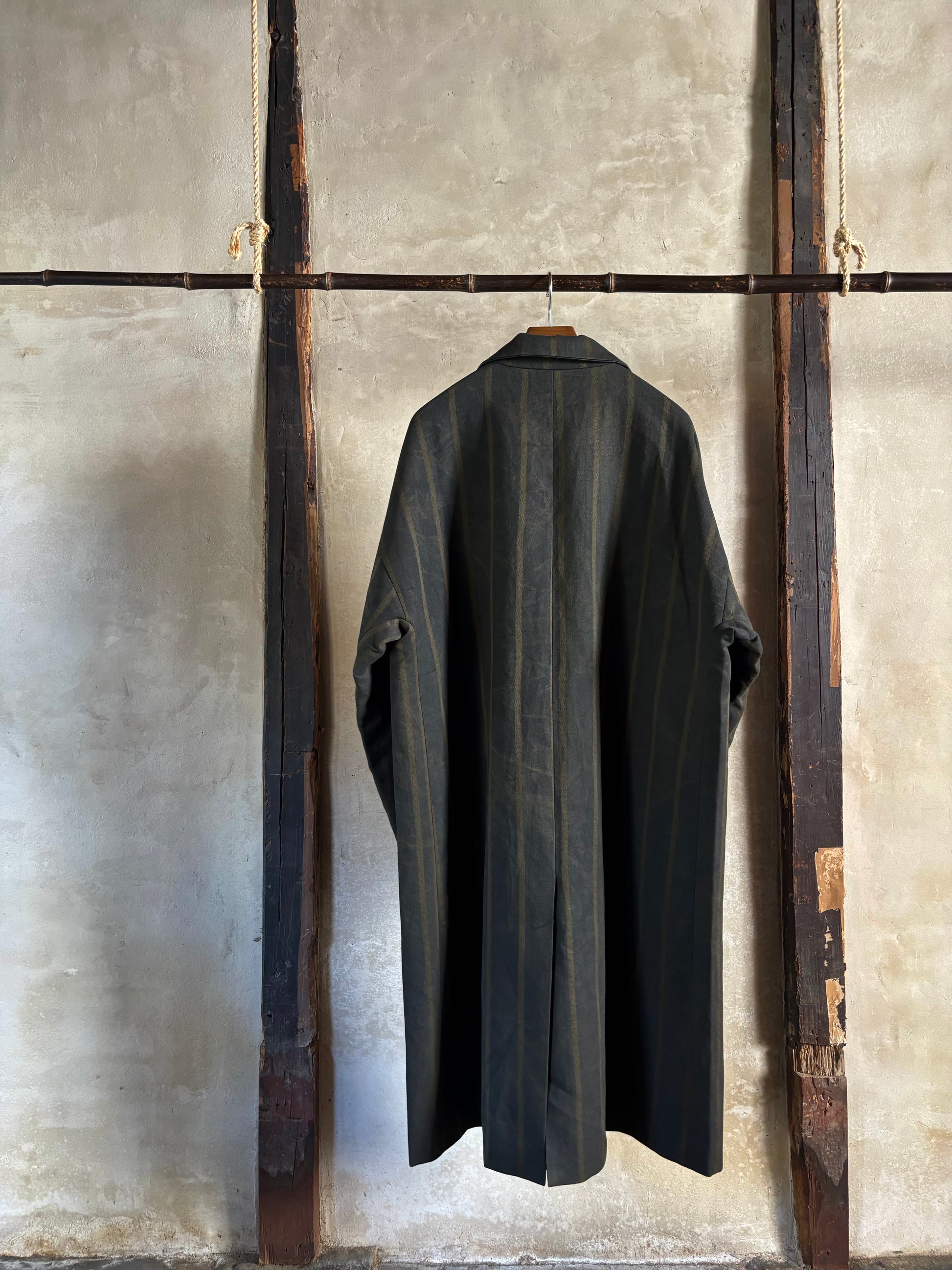 太いストライプは、墨染めのハンドプリント。